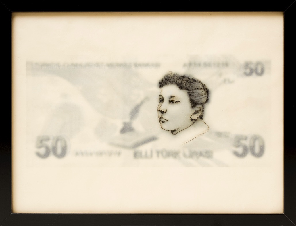 frauen auf banknoten, fatma aliye topuz | 30 x 40 cm | enkaustik, fototransfer | 2018