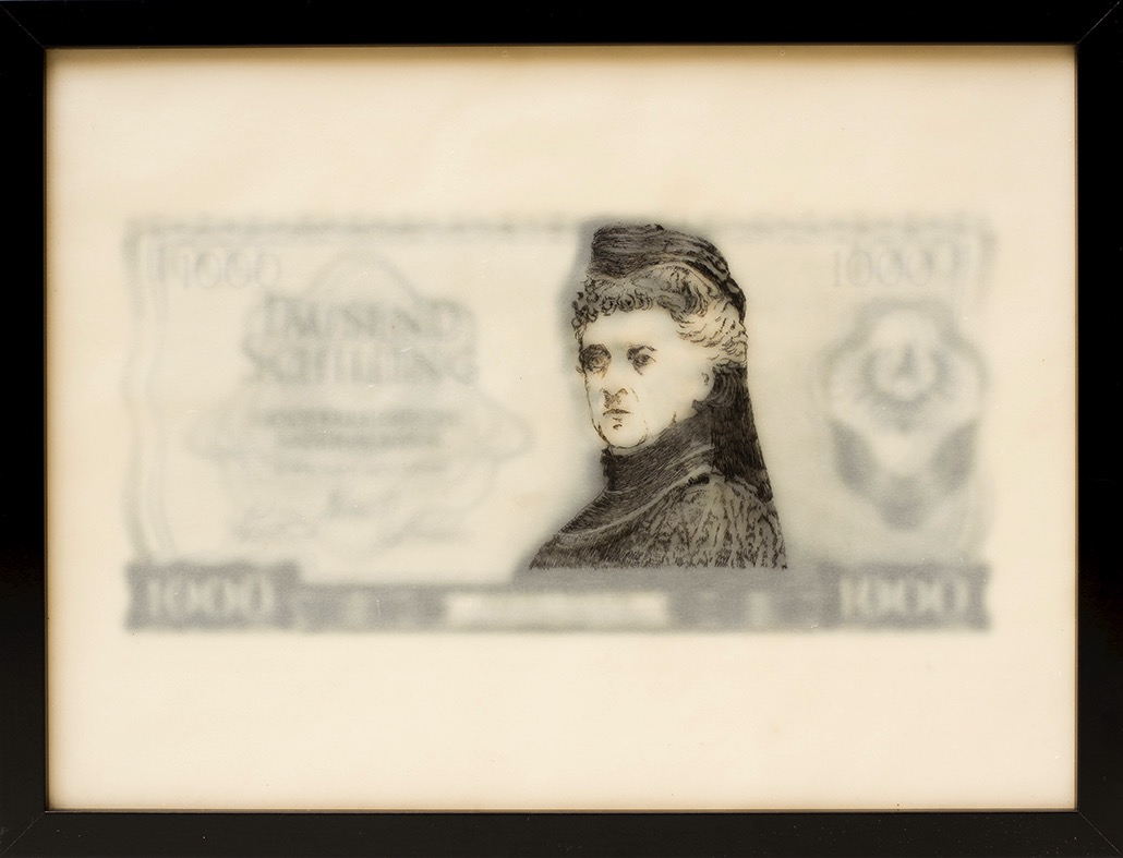 frauen auf banknoten, bertha von suttner, österreich | 30 x 40 cm | enkaustik, fototransfer | 2018